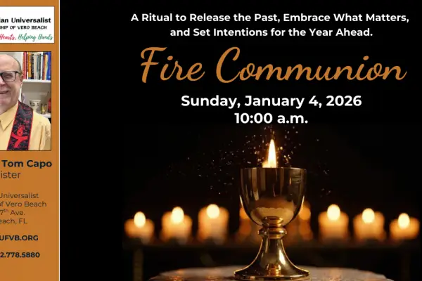 Fire Communion– Rev. Tom Capo| January 4, 2026 The beginning of the year is a time to reflect on the year past and look forward to the year ahead. The Fire Communion Ritual is about considering what you wish to let go of and what you want to hold onto...
