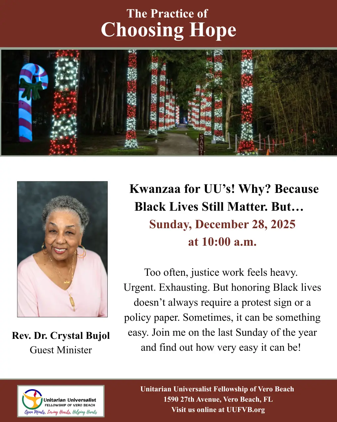 Kwanzaa for UU’s! Why? Because Black Lives Still Matter. But… – Rev. Dr. Crystal Bujol | December 28, 2025