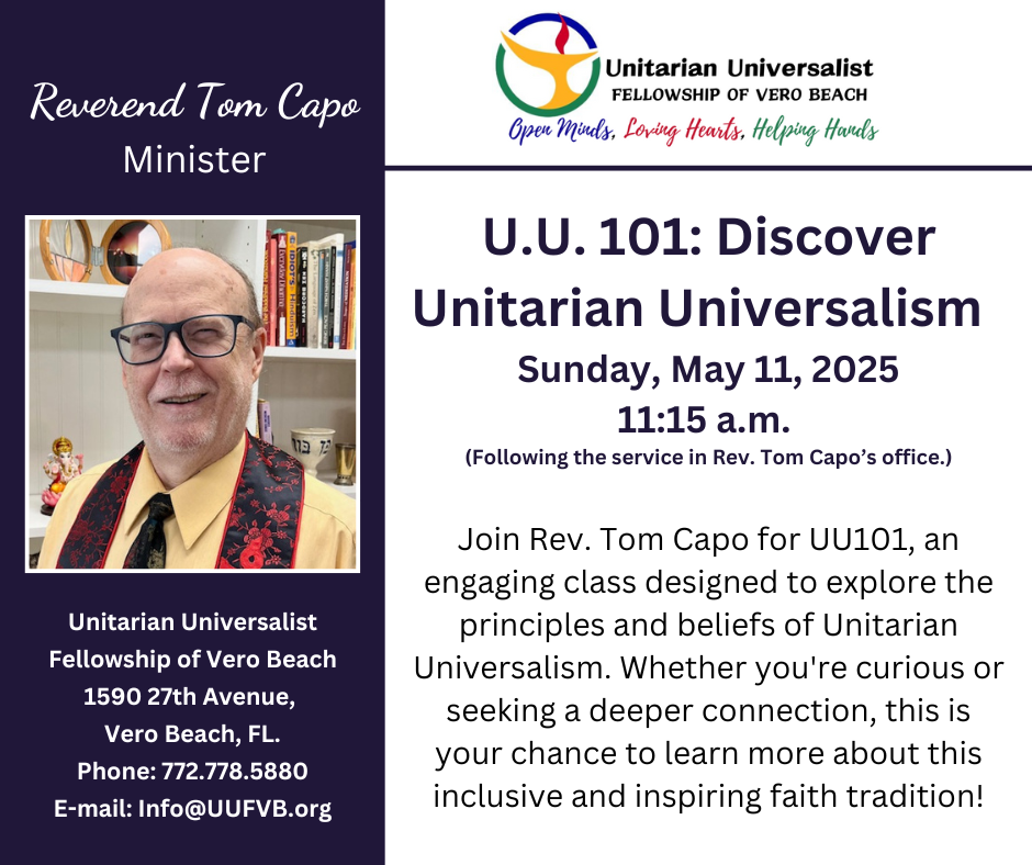 Newcomers are invited to meet with Rev. Tom after services for this brief informational session. The focus is on getting to know each other, as well as sharing information about the basics of
