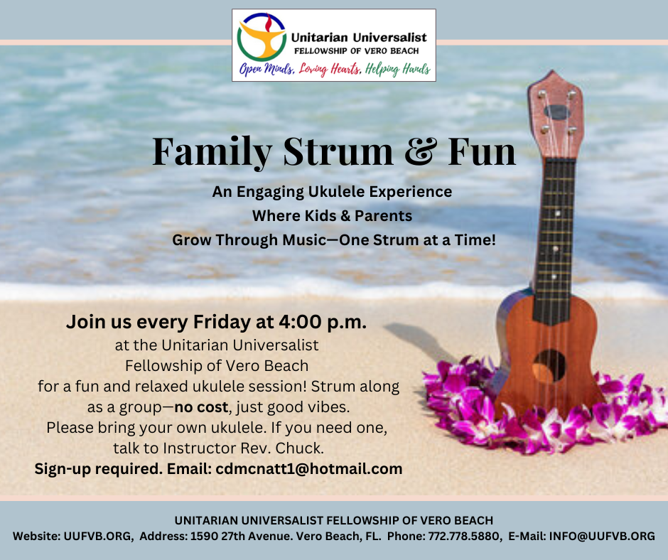 Please check with instructor Rev. McNatt for the summer schedule for the Family Ukulele Strum & Fun class.
